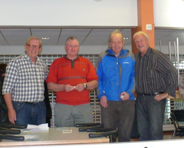 Her ser dere bilde av vinnerne flankert av arrangørene og 2.premievinnerne.  Fra v. Knut Kjærnsrød, Jan Th.Thoresen, Leif Erik Loe og Per Bryde Sundseth