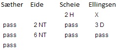 I Mester pulja var det flere Jessheim spillere, Thorval og Kurt Edgar, Svein Otto og Halvor, Jan Frode Karlsen med makker, Olav Lomsdalen med makker, Ronny med makker og Martin og Geir. Best av alle ble for øvrig Kåre Bogø og Bård Kåre Græsli fra Singsås BK. Disse gutta har vist en enormt god form i det siste, de er med å kjemper om seier i nesten alt de stiller opp i. Best av Jessheim parene ble Thorvald og Kurt, de kom til slutt på en god 6 plass. Svein Otto og Halvor var med helt oppe største delen av turneringen, en 10 plass var nok ikke det de hadde håpet på. På 9 plass fant vi Jan Frode med makker, de hadde en rufsete start hvis jeg husker rett, men klatrer godt på slutten. Olav og makker kom til slutt på en 20 plass, rett over middels. Disse vil for øvrig danne et fast makkerpar i divisjonsspillingen i året som kommer. Så Jorunn kan fort ende opp med å bli Jessheim medlem ganske snart. Ronny med makker hadde liten om ingen glid, det var mer minus enn pluss i nesten alle runder og 5 sist i det 34 par store feltet var ikke mye å skryte av. Martin og Geir slet tungt på samme måte som Ronny med makker og måtte til slutt ta til takke med 32 plass.