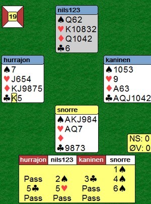 Hvis jeg får velge meg makker, vil Nils Kvangraven komme høyt på lista. Jeg vet ikke om  han nødvendligvis er så mye bedre enn de andre jeg får spille med, men han har en logisk sans som tiltaler meg veldig. Se bare spillet under.