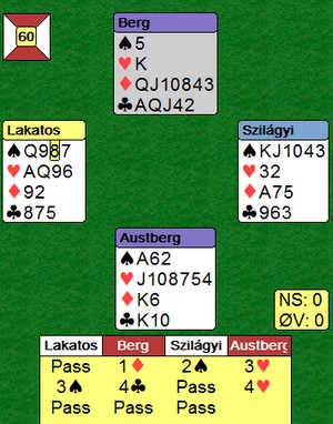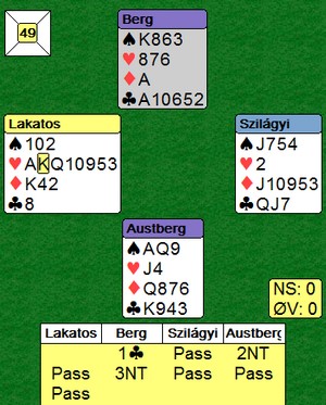 På det andre bordet havnet Ungarn NS i 4kl. En kontrakt som sto i ti stikk. 130 + 150 = 280 og 6 IMP.
