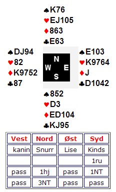 Hadde kaninen i vest spilt ut spar, ville dette blitt beit, men med ruter ut hadde toget faktisk allerede gått. Kaninen spiller alltid norsk, så når toeren kom ut var fargen tegnet.