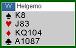 Makker har meldt inn 1sp i sonen på det du ser er KJxxx. Han har ingenting i minor og nå har jeg vel gitt deg fasiten?