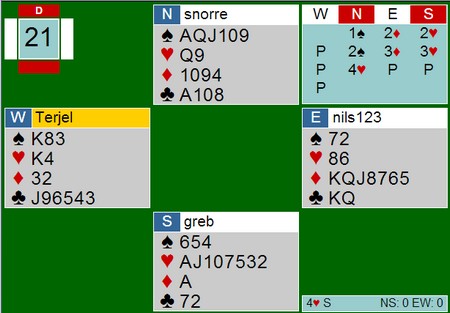 Sendte deg først en mail men så glemte jeg et vesentlig poeng som man bør få med og det er: hva er 3 spar fra svarhånden?