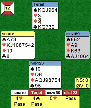Uansett tøft av Nils å melde 6sp uten en eneste trumf.