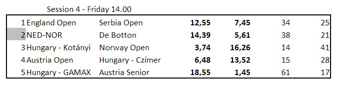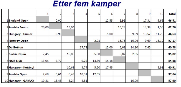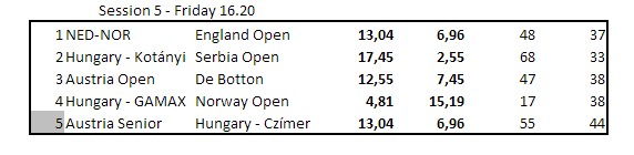 En skal kanskje ikke legge all vekt på butler, men det gir et korrekt bilde av hvordan en har prestert i forhold til de andre parene. Noen ganger er motparten flink og noen ganger har en uflaks. I det lange løp vil dette jevne seg ut og butleren gir et tilnærmet riktig bilde av egne prestasjoner over tid. Thor Erik og Thomas har så langt over middels i alle kampene og et snitt på omtrent 0,75. Nils og Terje har omtrent like mye minus pr. spilte spill. Skal vi komme til semifinalen, må de opp i kvalitet.