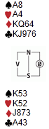 Makker er imidlertid ikke død og går på med 3 ruter. Fra Marius kommer nå 3 spar, og han er da plassert med en svært svak hånd med lang spar. Før du går videre kan du jo nå vurdere hva du ville gjort fra syd sin posisjon.