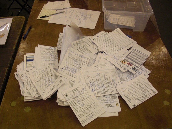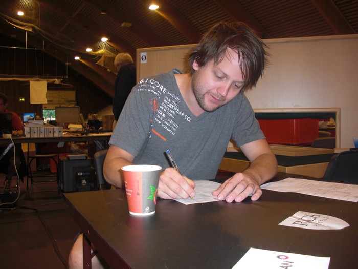 Johan Moen har sommerjobb som kortlegger. Mens vi andre spiller inne i Kongstenhallen, sitter han og to kompiser innestengt på noen kvadratmeter i gangen og legger kort med en fart som du ikke vil tro. Jeg spør om tempoet og Johan forteller at hvis alt går uten at kort kiler seg eller andre mekaniske feil oppstår, så rekker har 300 dubletter i timen. Det blir omtrent 12 sekunder i snitt pr. spill og da skal jeg hilse deg å si at du skal ha tunga rett i munnen.