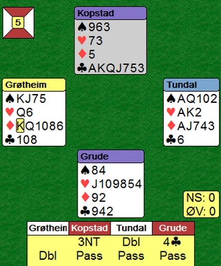 Så var Grude - Kopstad flink igjen og gjorde det vanskelig for Grøtheim - Tundal. 500 er billig mot en opplagt 920/980 om ØV får være mer i fred. Ikke rart at øst passet og hadde tro på enda mer enn to beiter.