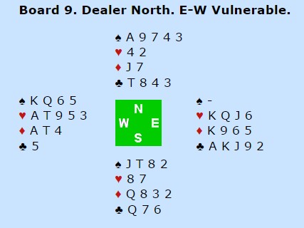 Det var en del tust med BBO den første dagene, så jeg finner lite spill å skrive om. Bedre i morgen forhåpentligvis.