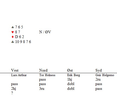 Helga 7.-9. november arrangerte NBF 1. og 2. divisjon. Flere spillere fra Helgeland Bridgekrets stilte på andre kretsers lag - i tillegg til at Helgeland Bridgekrets har ett lag i 2. divisjon. I 1. divisjon deltok Tor Eivind Grude på Vestfold 1, og de ligger på 5. plass etter 6 av 11 runder - kun 5 VP bak 2. plassen. Svein Gunnar og Håkon spiller på laget til Vest-Agder 2. Med seg på laget har de også en utflyttet Mo-væring, Marianne Harding. De har gått ut rolig, og ligger så langt på 11. plass. Vi regner med en Northug-spurt, og at de unngår både autovern og nedrykk.