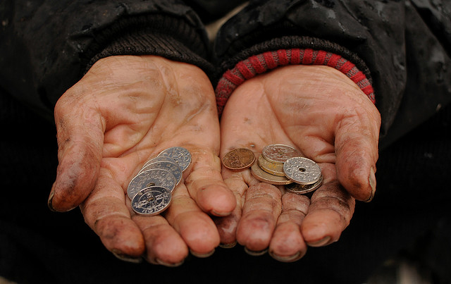 "Det hjelper ikke med penger i en kopp"; sa han som begrunnelse for sitt standpunkt. Dette stemmer rett og slett ikke. Han har rett i at det er ingen løsning på lang sikt å leve på almisser, men når en er sulten , har barn som er sultne og må bo ute under ei bro i Kristiansand sentrum, så hjelper det faktisk med penger i en kopp. Det døyver den verste smerten.
