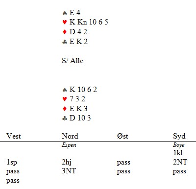 Vi har vært nødt å kutte juleturneringa med en kveld pga. dårlig oppmøte. Da ble det best 3 av 4 kvelder. Vi gratulerer Bernhard Iversen - Kåre Carlsen med deres 2. sammenlagt seier av 2 mulige denne høsten. Bernhard vant like godt Høstsingelen å. Vadsø beste bridgespiller?