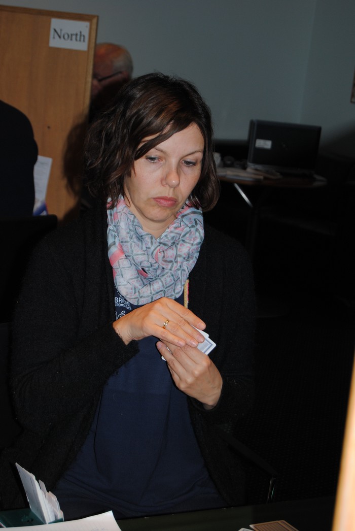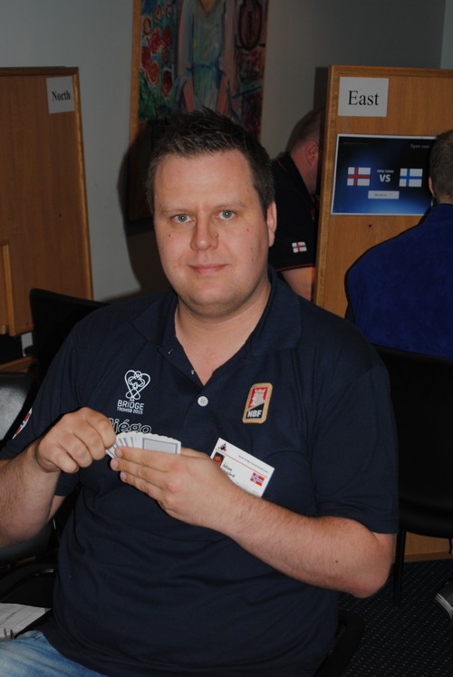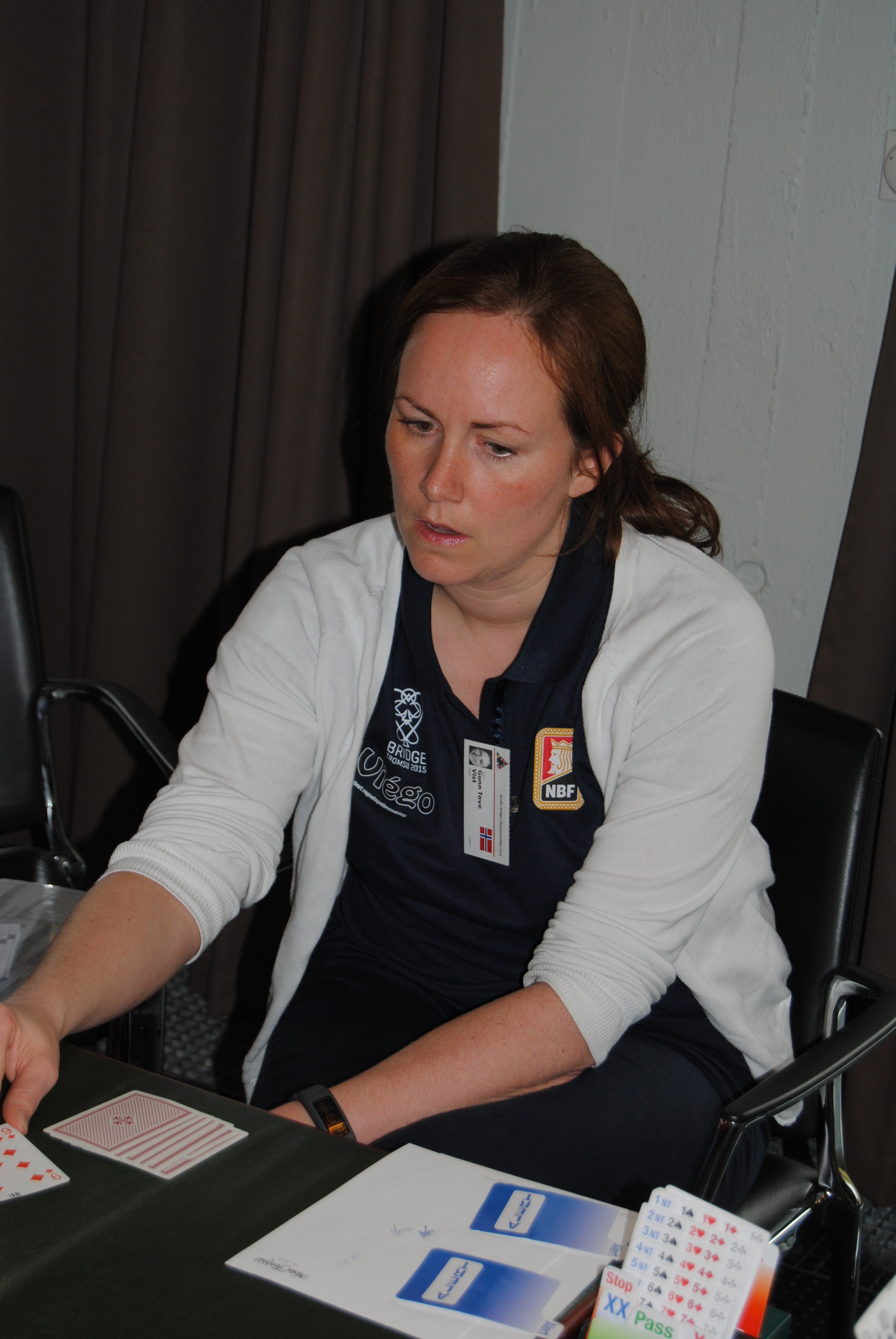 Nord åpnet i Ruter og Syd x'et 1 Spar for å vise Hjerter. Deretter meldte Nord og Syd seg opp i 4 Ruter og dermed ble Sølvi spillefører i Øst i 4 Spar som Nord doblet.