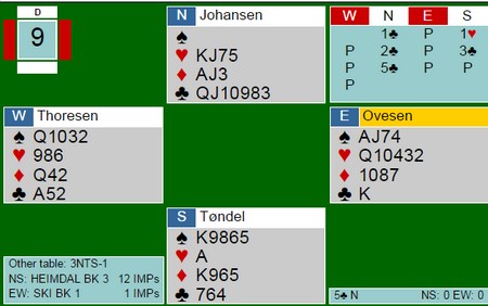 3NT gikk en beit på det andre bordet etter sparutspill, mens 5kl var ikke mulig å beite.
