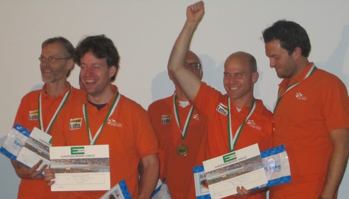 I lagbridge er det de store spillene som avgjør og dette er et sånt et fra kampen mellom GUTS.COM og FULLHOUSE. Norske Pernille Lindaas og Jørn Arild Ringseth sitter ØV og melder seg opp i en absolutt spillbar 7sp. Jeg skjønner godt at Jørn i øst melder storeslemmen og var ikke spesielt heldig med makkers single ruter.