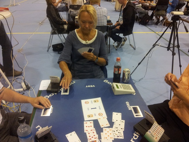 Ja, og det fant Elin. Hun spilte ruter til nieren som holdt, lot kløver ti seile, og dermed var ruter ess inntak til kløverfargen. Dermed var de 13 stikkene klare likevel.