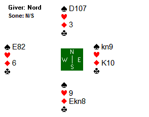 Jeg har vært med på noen diskusjoner med bl.a. Hoftaniska og landslagssjef Wennerød om begrepet momentum i bridgesammenheng. Er det i de hele tatt noe reelt som påvirker begivenhetenes gang? Slik jeg forstod landslagssjefen er det bare tull. Andre, og spesielt spillere som har vært i mange kampsituasjoner i store mesterskap føler imidlertid det er noe med det der "momentum" som ikke kan forklares. Det har kanskje mest med psykolog og selvtillit å gjøre. Hvis mån får et voldsomt gave-spill kommer det som regel flere gode spill i kjølvannet av det, og motsatt, når ting går galt kan det føles som om det er det samme hva man gjør i fortsettelsen, alt går galt. Selvsagt er det ingen rasjonell forklaring på dette, og Wennerød har nok rett i at det først og fremst handler om å spille ett spill av gangen.Likevel, jeg håper på et positivt momentum for alle de tre norske lagene utover denne uken. La oss gjerne få noen spill av det jeg nå skal fortelle, og aller helst tidlig i kampene. Spillet er fra seniorenes kamp mot Polen, og det kom (dessverre) i det nest siste spillet. At det ble fulgt opp med et stort norsk gevinstspill i det siste spillet beviser vel ingen ting med hensyn til momentum, men...