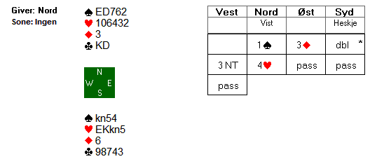 Å tape mot Færøyene er ikke noen enorm sensasjon lenger. Mange husker nok at våre venner der ute i havet vant sølv i siste Nordisk. Men de har selv med noen seiere i Budapest ligget veldig lavt plassert (nr. 32 etter onsdagens spilling). Så om ikke pinlig er det helt klart skuffende å tape klart mot den lille bridgenasjonen som bare har noen få innbyggere mer enn Tønsberg by.