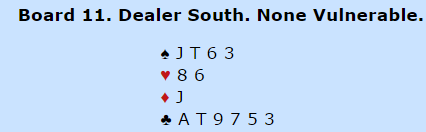 Spilleren som hadde denne prøven satt ikke med noen computer foran seg, men han valgte likevel å spille ut kløver 10 - beste utspill hvis man skal tro tallene. Men kortgudene hadde i stedet plassert kortene rundt bordet med mirakelsitsen som gjør at sparutspill ville vært bullseye: