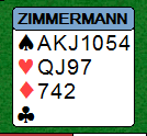 Her er det også 13 HP, men hånden er svak med spredte honører, verd max ca 4 stikk!