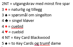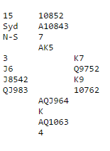 Etter at vest hadde åpnet med 1 kløver endte jeg som nord i 4 hjerter. Kløver konge kom i utspill til esset. Det så ut som fare for at hvis de kom inn før trumfen var tatt ut så ville det komme kløver og mer kløver fra vest slik at trumfhøyning truet. Men det hjelper ikke å ta ut trumfen, for da er blindemann en ørken, ingen inntak til kløveren, og det vil bli to rutertapere og en taper i hver av de sorte fargene. Så inntakene til nord må brukes til å spille ruter, og hvis den trumfhøyningssituasjonen jeg nevnte oppstår må hjerter knekt sitte høs vest. Så kløver ess vant første stikk fulgt av ruter til tieren og østs dame. Det kom spar til esset og mer spar. Her gjorde faktisk vest en feil, han skulle tatt for kløver dame først (kløveren kan ikke utnyttes uansett siden øst har fire trumf). Hvorfor han burde tatt for kløver dame vil du få se om litt. Inne i andre sparrunde ble hjerter konge spilt, så hjerter til esset. Dette var igjen: