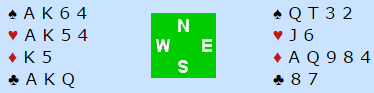 De fleste på vests plass åpnet med en sterk, kunstig 2 kløver, og noen svarte 3 ruter med østs kort, naturlig og positiv melding. Andre svarte 2 ruter - såkalt waiting - og vest skulle finne en gjenmelding med sine 26 hp. For mange er det hopp til 3 grand, 25-27, mens de som bruker såkalt Kokish kan får vist den hånden via 2 hjerter (viser iht. Kokish enten hjerterfarge, eller 25-27 grand) så 2 grand over svarerens obligatoriske 2 spar (rele). Meldes slik er det bedre plass, og de kan enklere finne eventuell tilpasning, som i dette tilfellet 4-4 tilpassen i spar. Storeslem i spar er helt glimrende. Mot oss hadde de ikke så sofistikerte metoder, og vest hoppet til 3 grand over 2 ruter. Øst tenkte ikke mer enn tre-fire sekunder før han smalt til med 7 grand!