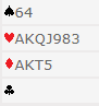 Det står vel mellom 6 ruter, 6 hjerter, eller storelsem i en av de fargene. Ved over 70 % av bordene ble det meldt storeslem direkte, noen steder 7 hjerter, andre sa 7 ruter. Slik så hele spillet ut: