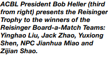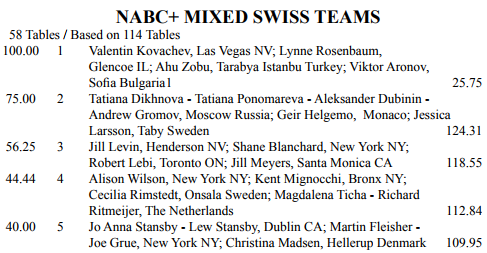 US FALL NATIONALS ble avsluttet i San Diego søndag med hovedturneringen Reisinger. Boye Brogeland og Espen Lindqvists lag DIAMOND (firemannslag med John Diamond og Brian Platnick) var i tetbildet gjennom hele turneringen. Men til slutt endte de på fjerdeplass, en sterk prestasjon selv om de lenge så ut til å kunne kjempe om seieren.