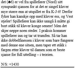 Da Harald S og jeg kom på at den kontrakten (6S) godt kunne bli doblet som Lightner (av Vest for å få kløver ut til stjeling) la vi på denne teksten: