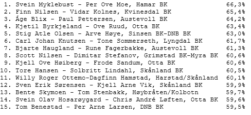 Litt systemprat i dag, inspirert av et spill Kåre Bogø fortalte meg. Det er fra en klubbkveld, og det er de to tannlegene Bjørn og Rune Kvaran fra Steinkjer som har hovedrollene.
