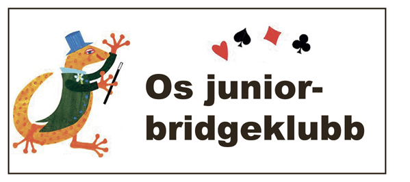 Alt er no klart for oppstart av Os juniorbridgeklubb. Avtale med Os Folkebibliotek om å låna lokalet er inngått og første spelekveld blir fredag 2. februar. Deretter blir det speling annankvar fredag fram til utgangen av april. Alle seks kveldane speler vi frå klokka 18 - 21. Vi har sett aldersgruppe 10 - 18 år, men om ein skulle gå litt utanom det er ikkje det så farlig.