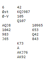 Fire par fant frem til 6 grand med syd som spillefører, og resten var i utgang.