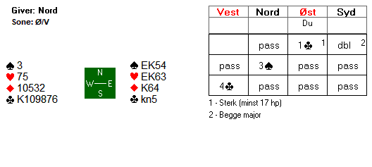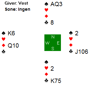 Men slik det satt var det i teorien en bet, med mindre øst finner på å spille ut kløver. Og det var nettopp hva Espen gjorde. Hvorfor?