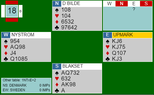 I seniorklassen er det jevnt. En ganske komfortabel situasjon for det norske laget ble forandret til litt mer stressende etter de to tapene i går, men det er fortsatt 11 VP fra vårt lag på 5.plass og ned til 9.plassen.