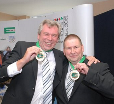 Roald (til venstre) og Helge Mæsel - her etter å ha tatt sølv i EM veteran par i Tromsø i 2015.
