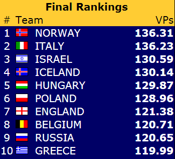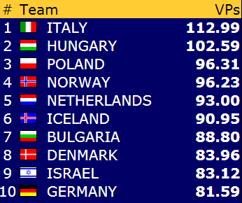Norge vinner senere en 6'er etter at polakkene nok en gang ikke treffer motspillet, og uten flere store svinger vinner Norge til slutt 36-6 og får med seg 16,73 VP mot er bra lag.
