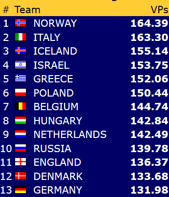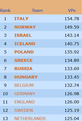 Norge stiller lag i åpen-, dame,- og veteran- klassene. Først ute var landslagene i åpen klasse som kl 10.00 onsdag6. st5artet full «Round Robin», alle mot alle over 11 dager, totalt 33 kamper pluss en walk over. Det møter nordmennene de sterkeste motstanderne på slutten, så det gjelder å sope inn mye mot de antatt svakere. 1. runde mot Hellas gikk ypperlig, allerede fra start var Nils Kvangraven (N)- Ulf Tundal (S) i åpent og Boye Brogeland (V)- Espen Lindkvist (Ø) i lukket kraftig på hugget. Hjemmeseier 60-0 imp var formidabel start. Ledelse allerede, men det er lang og krevende løp framover. Gl videre!