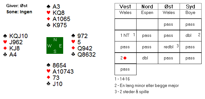 På spillet etter spilte Wales bort en soneutgang, der det satt litt surt, mens Espen og Boye var i en mye sikrere 3NT.