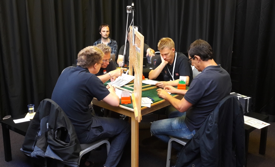 På spill 27 fikk Allan og Terje spille 4 hjerter med 10 stikk, mens Espen og Boye meldte over i 4 spar. Øst burde ha doblet og redusert til 3 IMP til Norge, men nå ble det i stedet kun 100 og 8 norske IMP.