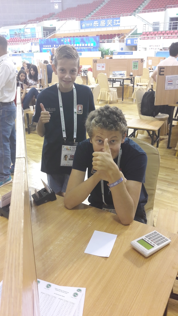 I lørdagens tredje kamp møtte Norges U16-lag ledende Kina 3. Det ble en jevn og spennende kamp, og Norge klarte seg godt mot vertsnasjonen. Til slutt stakk Norge av med seieren etter IMP-sifrene 24-21, og fikk dermed med seg drøyt 11 VP fra oppgjøret. Vi skal se på et par av spillene som dukket opp i løpet av runden.