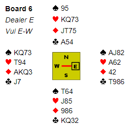 For å komme til det tiende stikket må enten spillefører få tak i ett stikk i kløver uten å gi bort mer enn to kløverstikk, eller få tak i to stjelinger på den ene siden. Hvis det stikkes med hjerter ess fulgt av å trumfe ut i tre runder blir det fort kun ni stikk, og det skjedde ved mange bord. Noen greide å få tak i ett heldig kløverstikk. Du vet imidlertid ikke hvordan kløveren sitter, så løsningen på spillet er å gå for to stjelinger på den ene siden og dermed totalt seks trumfstikk.
