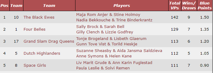 I kampen om 4.plassen mot engelske BLACK vant de to lagene hvert sitt sett, men engelskmennene vant altså sitt sett med 3 IMP mer.