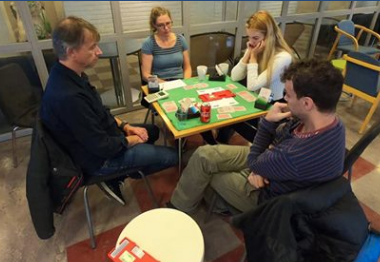 Ved begge bordene ble kontrakten 4 spar etter at Ø/V hadde vært med i meldingene. Derfor ble kontrakten 4 spar doblet ved det ene bordet. Om Ø/V har vært med og meldt og støttet kløver er det naturlig med kløver ut. Da forsvinner en ruter fra nord med det samme på kløver ess, og det spilles for overstikk.