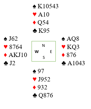 Ruterfagen må utnyttes. Men for at spillefører skal kunne utnytte den for tre stikk med den sitsen her må det tas tre finesser i fargen. Først liten til finesse som ryker, så må det senere tas to finesser til siden øst har fire ruter. Følgelig behøves mange inntak til nords hånd.