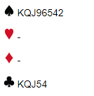 Øst spiller ut ruter som går til kongen, vests ess og stjeling. Ingen av motspillerne er særlig fornøyde med den starten, men makkeren din ser fornøyd ut. Du vet imidlertid at utspillet ikke ga deg noen ting, og selv ser du at du fortsatt har et problem, trumfen. Den gir jo normalt kun en taper, men kan sparen sitte 4-0 med alle sparene hos vest? Har han doblet 6 spar fordi han har to ess, eller har han doblet fordi han har to ess og A-10 fjerde i trumf?