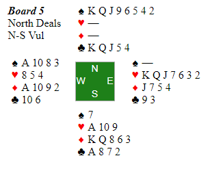 Å ha en sånn hånd som nord her hadde skjer selvsagt uhyre sjelden, og sitsen rundt bordet gjorde at det ble en svært uvanlig liste med scorer. La oss ta en titt på alle resultatene med en liten kommentar til hvert enkelt (kun ved ett bord spilte Ø/V kontrakt, i 5 hjerter doblet):