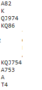 Hvordan spiller du 6 spar med hjerter ut til nords konge? Det ser ut som det bør gå greit ved rett og slett trumfe to hjerter hos nord. Kan det være farlig? Jo, selvsagt kan vest ha sekskorts hjerter så øst kan trumfe over den andre stjelingen, selv om spillefører er så forsiktig som mulig og ikke tar hjerter ess før han trumfer. Kanskje kan du trumfe med esset den andre gangen? Det går bra om bare ikke trumfen sitter 4-0.