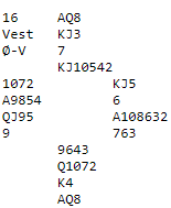 Noen steder fant ikke Ø/V stjelingen. Enten kom det annet utspill, eller vest returnerte ikke hjerter, og heller ikke spar som også holder kontrakten på ti stikk. Med for eksempel hjerter ut til esset og ruterskift fra vest i andre stikk blir det elleve stikk. De som noterte seg for +150 vant spillet 2-0 hvis N/S ved det andre bordet hadde +130, altså like stor BAM-gevinst som for de som var i utgang og vant den mot delkontrakt ved det andre bordet.