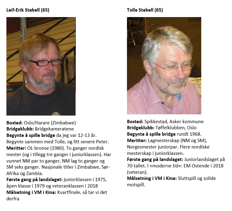 Knut prtøvde seg med ru 8, men Syd hadde ru 10 som vant og spilte ru K opp igjen og Molander fikk for esset. Det fulgte kløver mot bordet, Syd la i damen og kongen vant. Nå valgte Øst å satse på at Syd ikke hadde flere kløvere, han spilte ny ruter der Syd fikk for damen sin. Og nå sto resten! Hvorfor kan du lure på. Jo Syd hadde 5-1-5-2 i fordeling og var jo innspilt og måtte spille enten ruter eller spar til dobbeltrenons. +420 til Ø-V ga dem +122 imp. Bare tre par vant 4 hjerter, men mange var i 5 hjerter som alltid betes. Trolig fordi Syd har vist tofargehånd med 5 kort spar (Michael cue). 4 spar av Syd/Nord er bare en bet, god stamp altså og presser det Ø-V til 5-