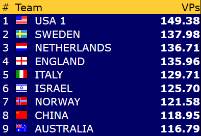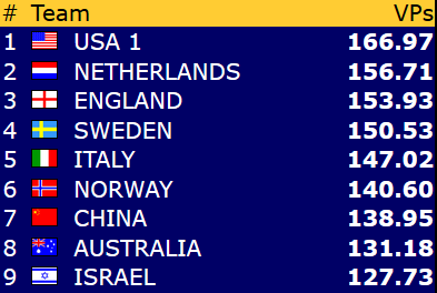 Norge - USA 2 9,69 - 10,31 (IMP-score: 25 - 26)